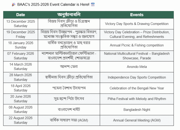 The Bangladesh Australia Association Canberra (BAAC) is pleased to announce its new Executive Committee (EC), elected in the association's Annual General Meeting on 19th October 2025.